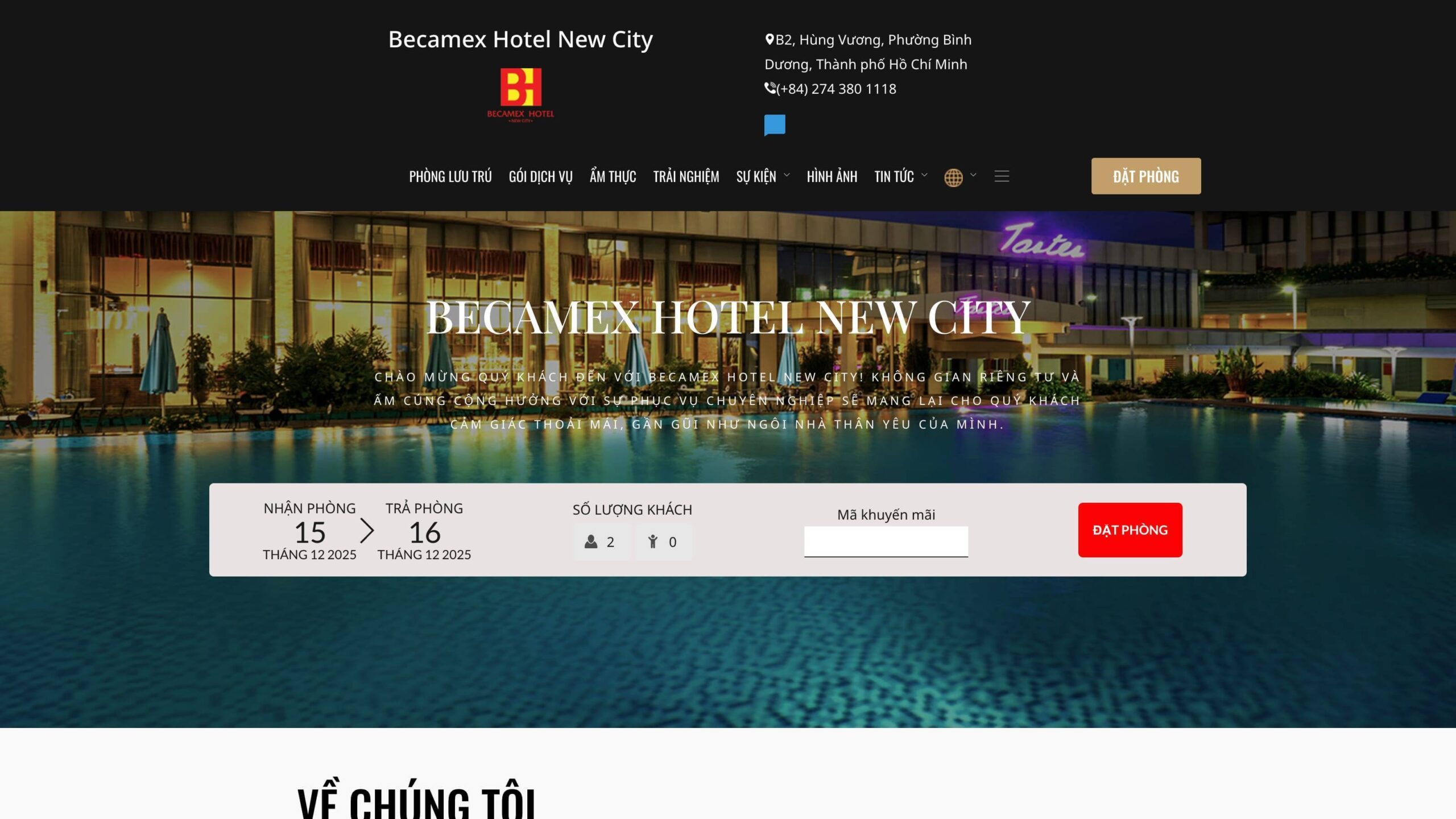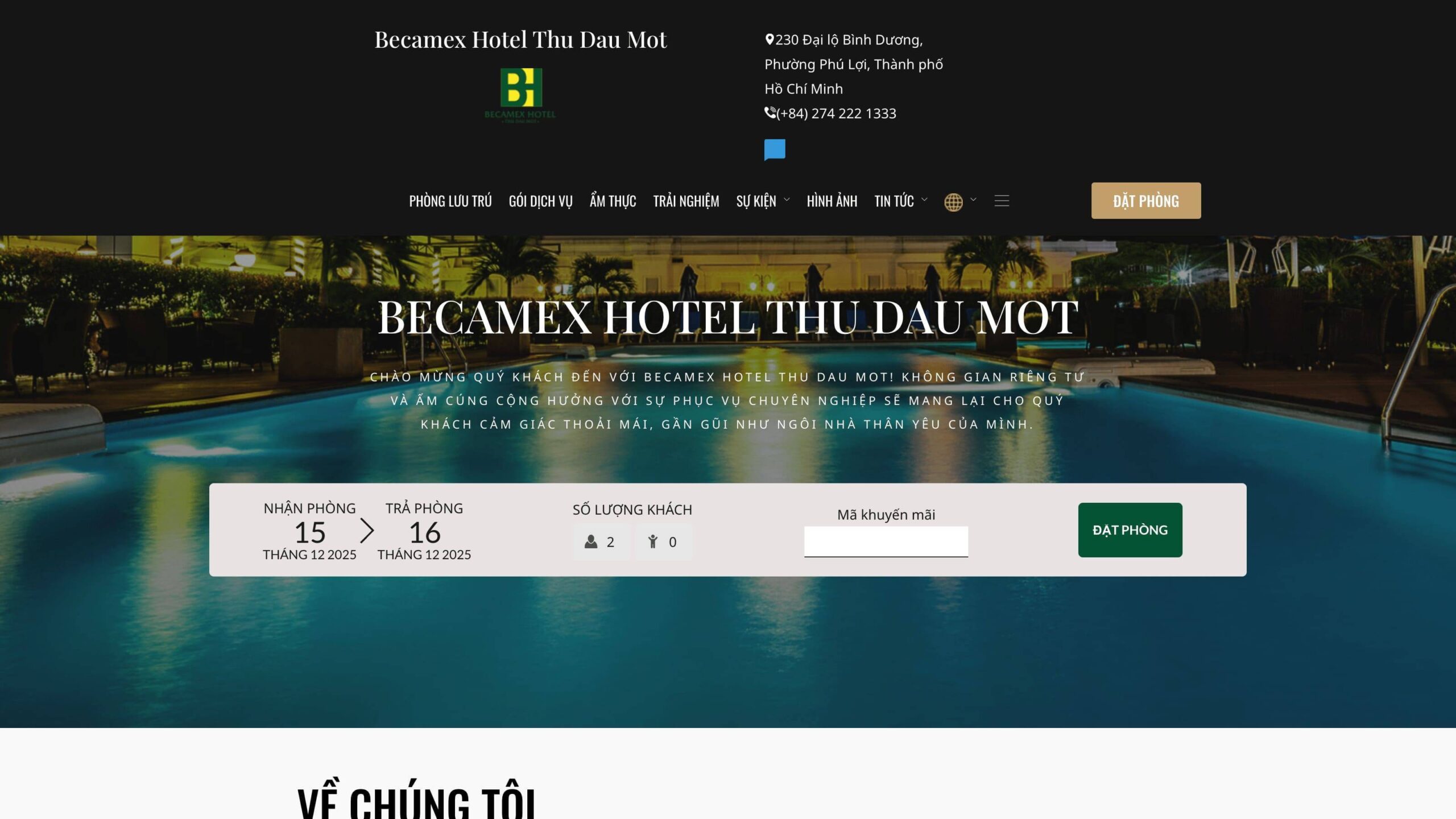 The platform integrates directly with Siteminder for real-time room availability and pricing, and TrustYou for live guest reviews. These integrations enhance credibility and significantly increase the likelihood of direct bookings—one of the key business objectives for Becamex Hospitality.