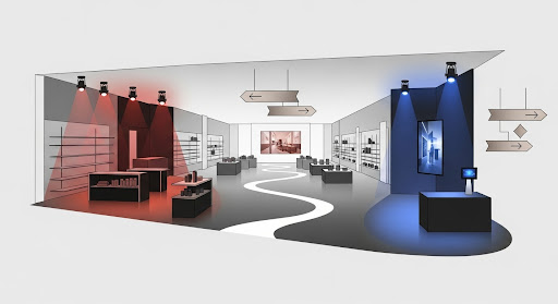 Bố trí ánh sáng, màu sắc, lối đi và các bảng thông tin trong ngành bán lẻ