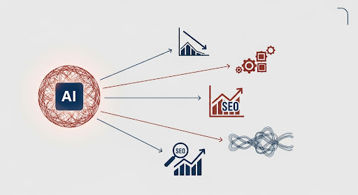 AI tổng hợp nội dung từ các nguồn trực tuyến khác nhau và diễn đạt lại. Nếu không có sự chỉnh sửa kỹ lưỡng của con người, nội dung này có thể bị Google gắn cờ vì vi phạm nguyên tắc “chắp vá và kết hợp nội dung”. Việc sử dụng AI mà thiếu sự kiểm soát cũng có thể dẫn đến việc tạo ra nội dung trùng lặp hoặc đạo văn một cách vô ý, gây ra các vấn đề về pháp lý và đạo đức.