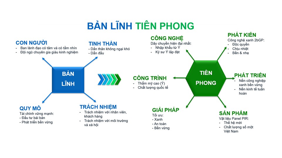 RA xác lập định vị “Bản lĩnh tiên phong”, thể hiện vai trò dẫn dắt của Greenpan trong công nghệ panel PIR tại Việt Nam. Thông điệp sản phẩm xoay quanh “Giải pháp tối ưu cho công trình xanh”, nhấn mạnh bốn lợi ích: Hiệu quả – Bền đẹp – Tiện lợi – An toàn. Đây là nền tảng giúp tiêu chuẩn hóa cách thương hiệu xuất hiện trên các kênh truyền thông.